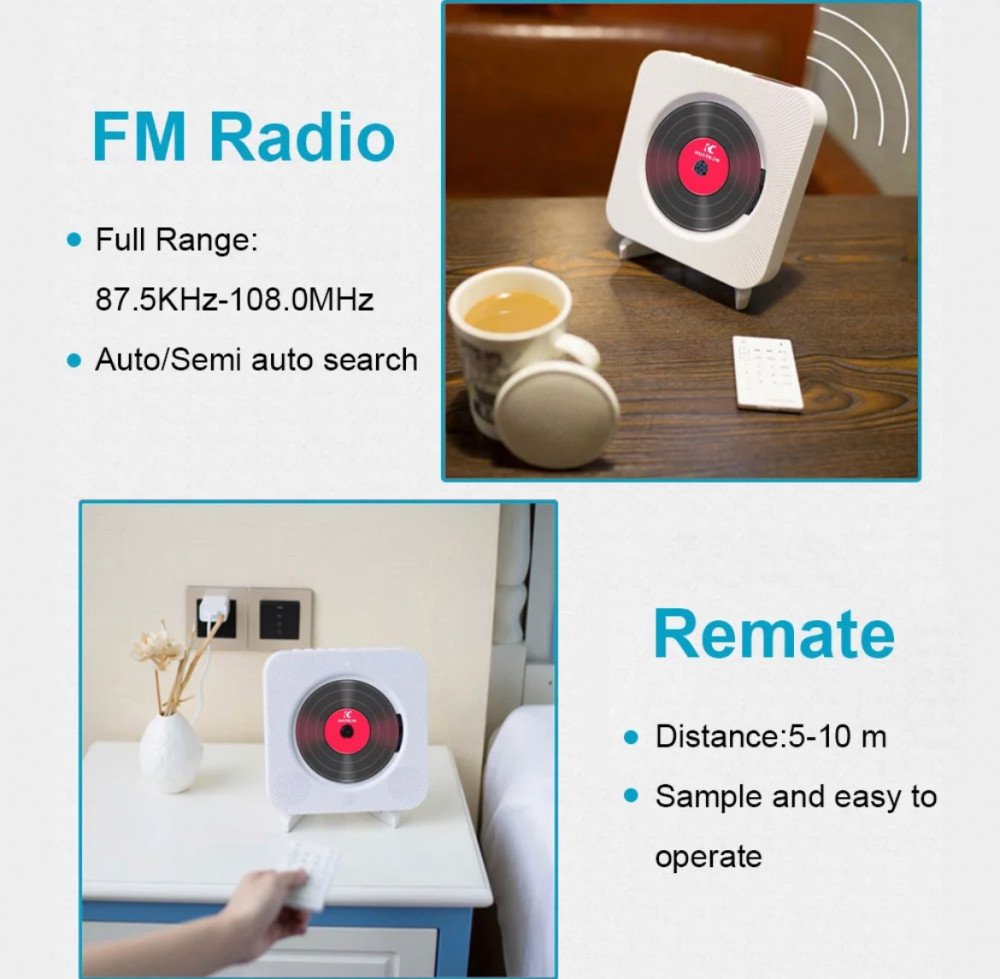 مشغل الاسطوانات المحمول متعدد الوظائف مع ريموت التحكم عن بعد (تشغيل الCD , يدعم البلوتوث , راديو , aux , USB)